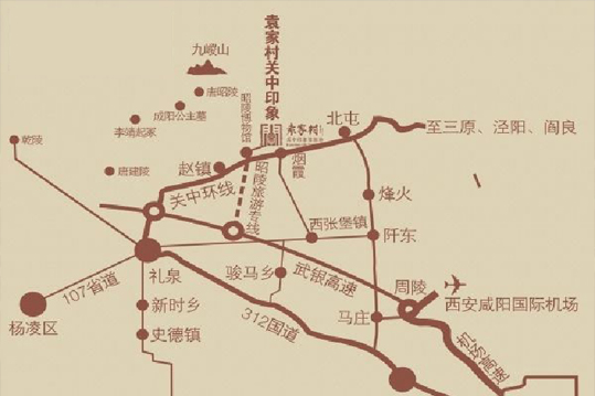 袁家村位于咸陽(yáng)市禮泉縣,距離咸陽(yáng)國(guó)際機(jī)場(chǎng)較近,空運(yùn)便利,有利于吸引國(guó)際旅客前來(lái)觀光體驗(yàn)。附近機(jī)場(chǎng)高速、武銀高速、312國(guó)道、107省道、關(guān)中環(huán)線等道路密布,交通發(fā)達(dá),西安至禮泉、西安至袁家村、咸陽(yáng)至袁家村的客運(yùn)大巴發(fā)車頻率高,游客無(wú)論是乘大 巴還是自駕游都很便利。