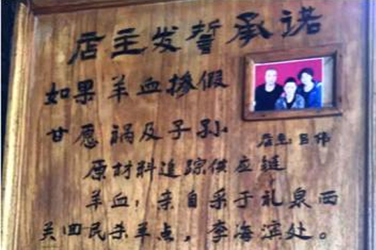 第一,重視食品質(zhì)量管理體系。袁家村因關(guān)中小吃而走紅,所有游客都是來(lái)吃小吃的,而袁家村的小吃讓所有游客都放心,因?yàn)榇謇镆笏械曛髟陂T口豎牌子發(fā)誓,如:“店主發(fā)誓承諾,如果羊血摻假,甘愿禍及子孫。店主呂偉”;“店主重誓承諾,如果做不到以上幾點(diǎn),甘愿后輩遠(yuǎn)離仕途墜入乞門。”